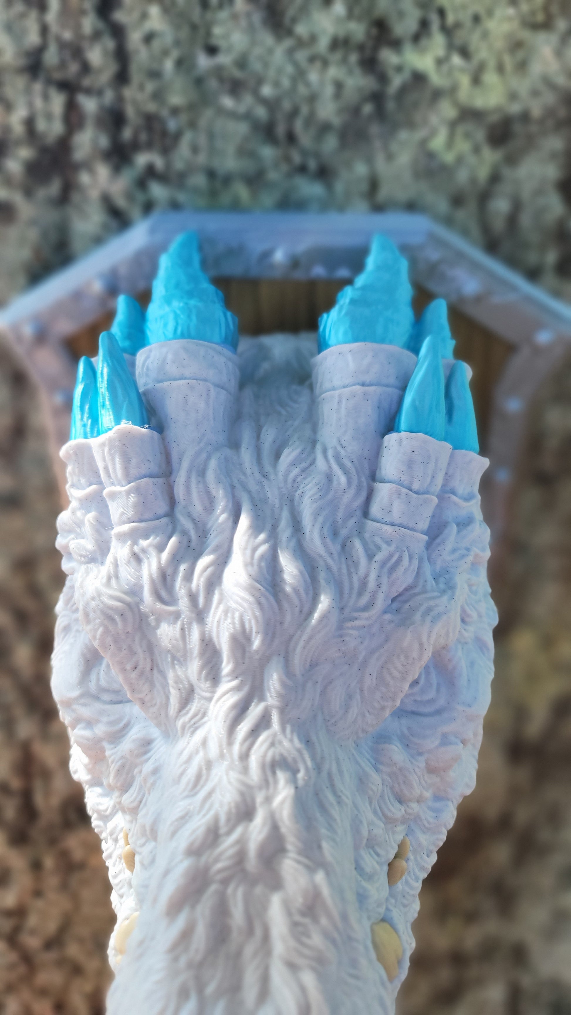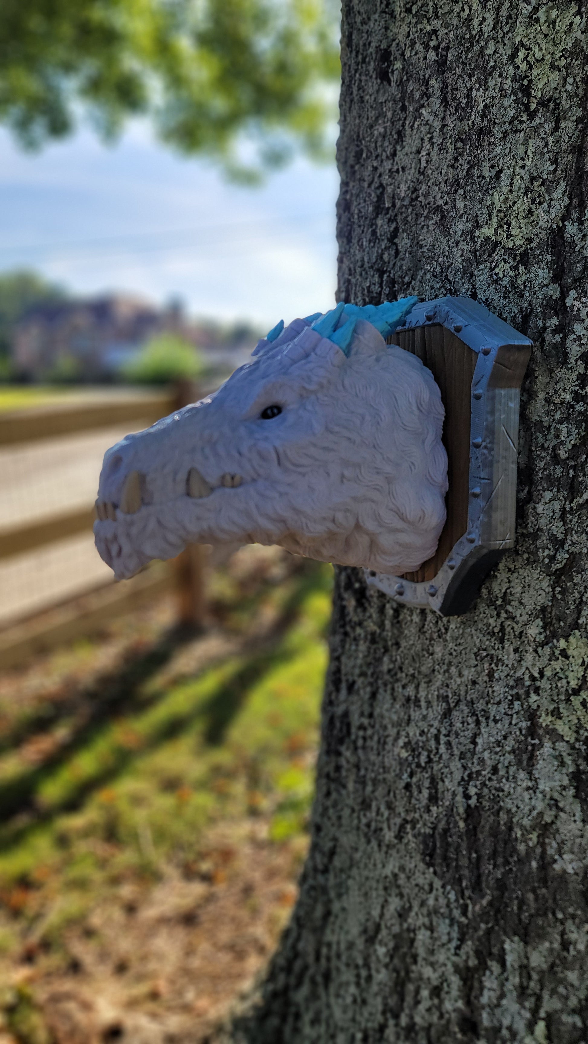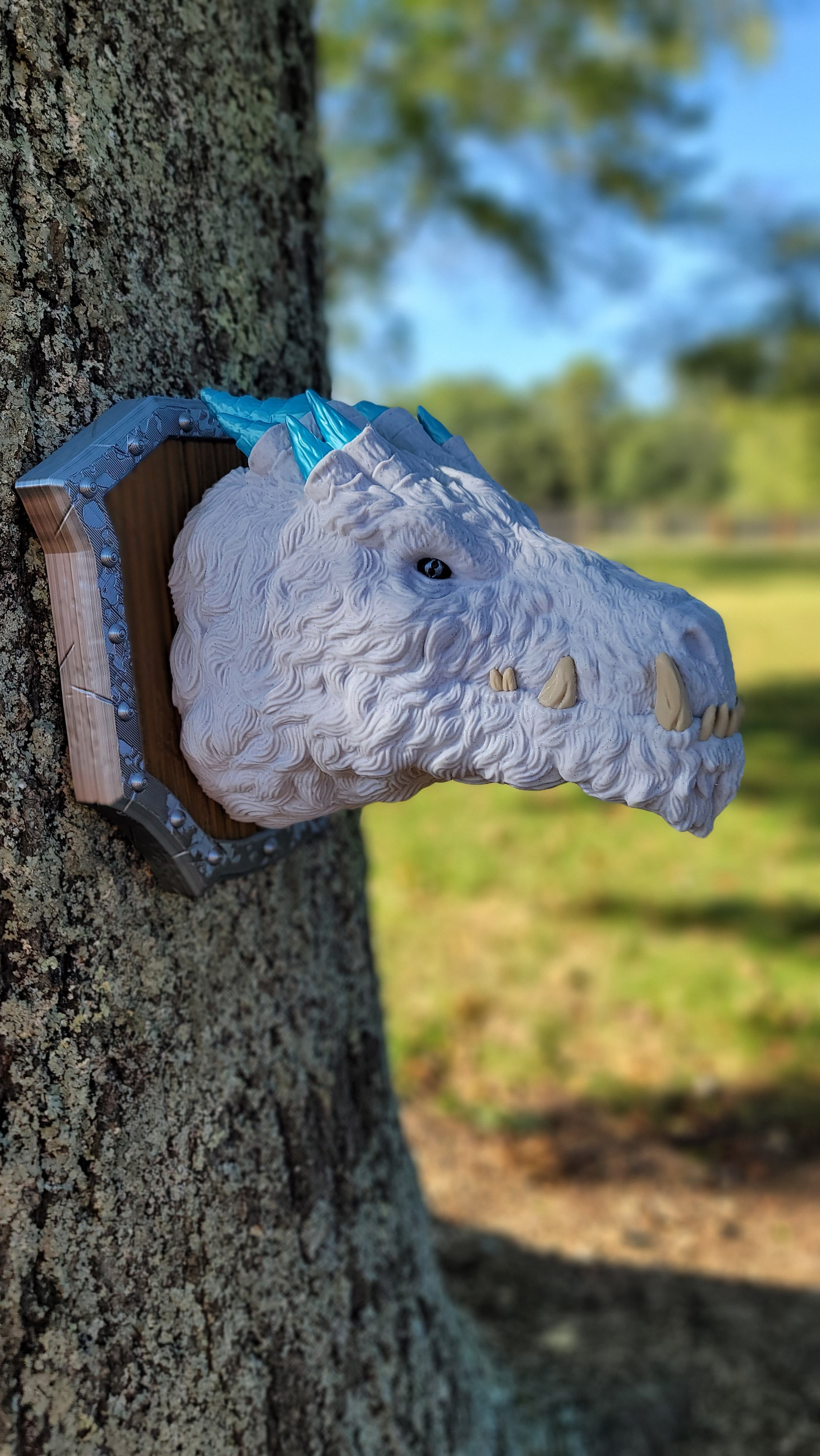 Chill out with our 3D-printed Snow Dragon head! Adorned with frosty fur and an icy, regal demeanor, this dragon brings a touch of wintry magic to your space. Perfect for adding a cool, mythical vibe to any room, it’s a frosty fusion of fantasy and art. Embrace the cold and let this dragon’s frosty breath transform your décor! ❄️🐉✨